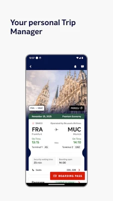The Brussels App gør det nemt at booke flyrejser, vælge sæder og ordne dine boardingpas. Den er din ideelle mobile rejsepartner, der giver dig ro i sindet og sikrer, at din rejse forløber helt problemfrit.