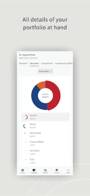 Få mere end blot et hurtigt kig; få en dybdegående forståelse af dine aktiver. Denne platform giver dig mulighed for at konsultere din porteføljes nøjagtige position og dit samlede afkast med præcision. Udforsk den underliggende sammensætning af dine investeringer, så du kan se præcis, hvor dine midler er allokeret. Har du flere porteføljer? Intet problem. Saml dem alle i én intuitiv, global visning for et fuldendt og holistisk overblik over din samlede finansielle situation. Opdag potentialet i dine investeringer med enestående klarhed.