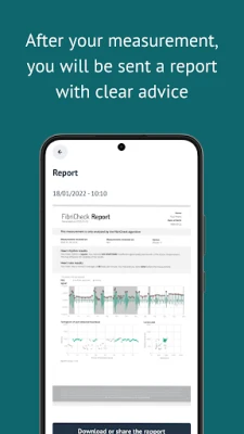 Bekymret for dit hjertesundhed? FibriCheck giver dig en intuitiv måde at overvåge din hjerterytme direkte fra din smartphone. På kun 60 sekunder kan du, blot ved at placere en finger på din telefons kameralinse, opnå indsigt i din puls og hjerterytme – helt uden behov for ekstra udstyr. Uanset om du oplever symptomer som hjertebanken, eller blot ønsker at opretholde en rutinemæssig kontrol, står FibriCheck klar. Regelmæssige målinger, gerne to gange dagligt eller når symptomer opstår, suppleret med tilpasselige påmindelser, sikrer, at du hurtigt bliver opmærksom på eventuelle ændringer og opnår ro i sindet.