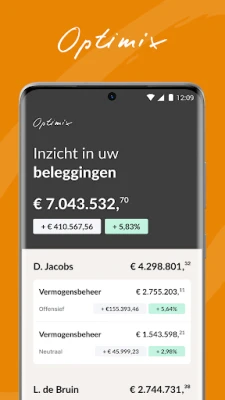 Med **Optimix app'en** får du et uovertruffet overblik over dine investeringer, lige ved hånden. Vi forstår vigtigheden af klarhed, når det gælder din formue. Derfor opdateres værdien af dine beholdninger dagligt baseret på de seneste lukkekurser, hvilket giver dig en nøjagtig og aktuel status over din portefølje. Du får ikke blot tal, men også detaljerede forklaringer på alle gennemførte transaktioner, så du altid fuldt ud forstår bevægelserne i dine investeringer. Dette giver dig ro i sindet og mulighed for at træffe informerede beslutninger med **Optimix** som din partner.