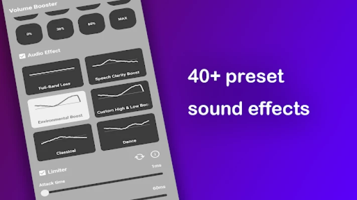 Oplever du ofte, at din enheds lyd mangler den nødvendige kraft eller klarhed? Med Volume Booster Pro kan du fuldstændig transformere din lytteoplevelse. Dette innovative værktøj løfter øjeblikkeligt din lydafgivelse til et nyt niveau og leverer op til 200% mere volumen. Glem alt om irriterende forvrængning; Volume Booster Pro er designet til at give dig en rigere, fyldigere klang uden uønskede forstyrrelser, uanset om du lytter til dine yndlingssange, ser film eller deltager i opkald. Dyk ned i en verden af krystalklar lyd, finjusteret med en avanceret equalizer lige ved hånden.