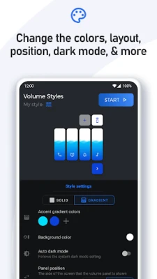 Udover et imponerende bibliotek af forudindstillede stilarter – fra Android 10 til OnePlus OxygenOS, Huawei EMUI og tusindvis af andre skjult i appen – inviterer Volume Styles dig til at udfolde din egen kreativitet. Den indbyggede Style Creator lader dig finjustere hver eneste detalje, så du kan designe en helt unik stil fra bunden. Når dit mesterværk er klar, kan du dele det med et globalt fællesskab via Style Feed, hvor et utal af andre brugergenererede stilarter venter på at blive opdaget. Gem dine favoritter eller aktiver dem øjeblikkeligt med ét enkelt tryk.